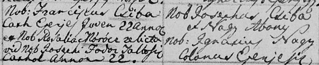 Matričný záznam z roku 1799 - Ferentz Mórócz, Nob. (Nobilis, šľachtic) Eperjes