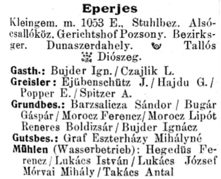 1891 - Móroczovci z Jahodnej (Eperjes) sú evidovaní medzi významnými vlastníkmi pôdy v obci
