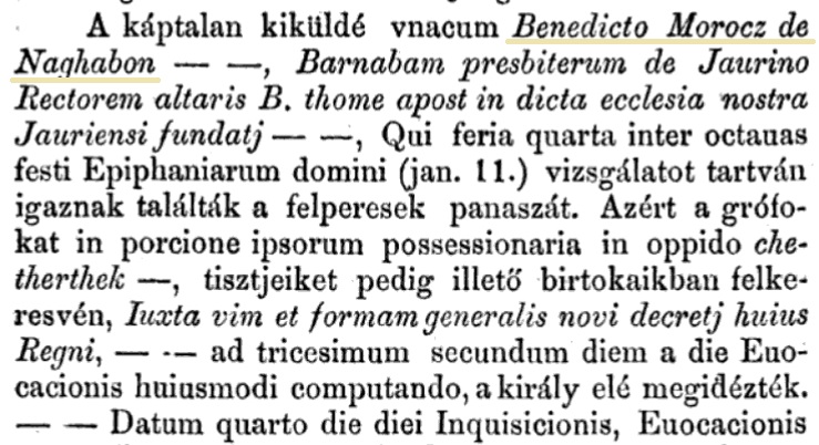 Záznam kapituly o vyslaní Benedicta Morocz - 1519
